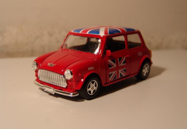 Mini cooper automobilio modeliukas. Išmatavimai: 11 cm ilgio, 5 cm pločio. Patraukus atgal pats važiuoja (su motoriuku).