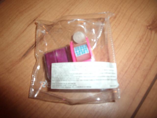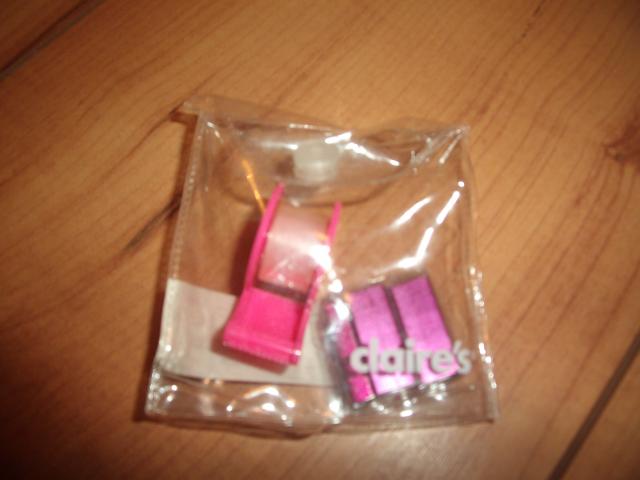 mini liptios juostelės laikiklis (juostelės jau nebėra) ir mažam susegėjui rožinės sąsagėlės