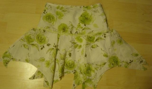 Baltas mini sijonas su šviesiai žaliom gėlytėm.