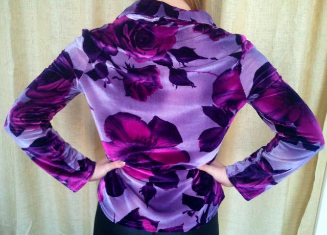 Puošni palaidinė. Labai minkštos medžiagos, gražiai atrodo po veliūriniu juodu švarku ir su įvairiais kostiumėliais. Labiau tiktų vyresnio amžiaus moterims, tačiau gali priderinti ir jaunos. Dėvėta vieną kartą. Praktiškai nauja. Sudėtis: polisteris, lykra