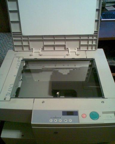 juodai baltas skaneris- printeris, su dazais, veikiantis.