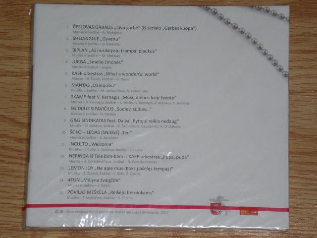 1. Ceslovas Gabalis ,,Tavo garbe''. 2. 69 Danguje ,,Gyvenu''. 3. Biplan ,,As nusikirpsiu trumpai plaukus''. 4. Jurga ,,Smelio zmones''. 5. KASP orkestras ,,What a wonderful world''. 6. Mantas,,Dainosiu''. 7. Skamp feat V. Kernagis ,,Musu dienos kaip svente''. 8. Egidijus Sipavicius ,,Sudiev, sudiev...''. 9. G&G Sindikatas feat. Daiva ,,Rytojui reikia nedaug''. 10. Soko-ledas (Sniege) ,,Ten''. 11. Inculto ,,Welcome''. 12. Neringa is Tele bim-bam ir KASP orkestras ,,Pupa, pupa''. 13. Lemon Joy ,,Ne apie mus (