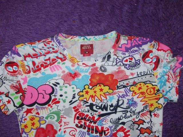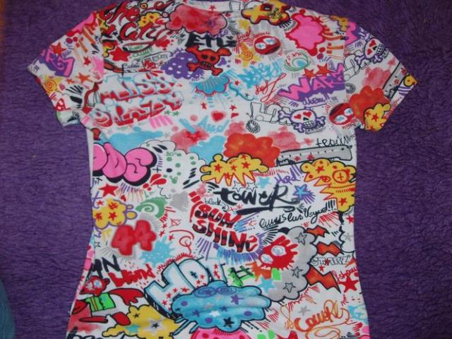 Grafiti motyvais dekoruota palaidinė, labai graži/ ryški. Dydis S