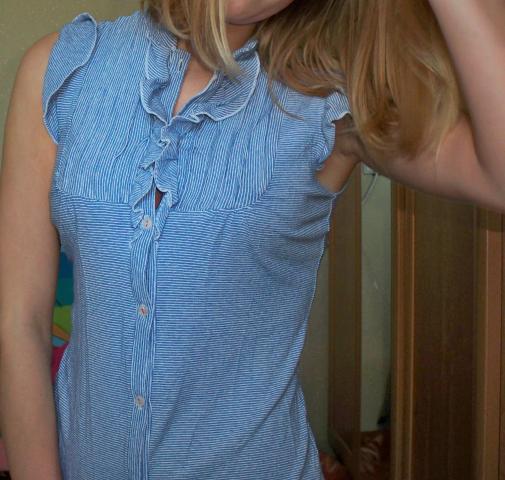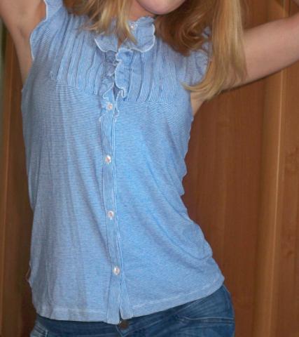Smagūs, dryžuoti, žydri marškinėliai, labai mieli kūnui, trikotažiniai. Be defektų.