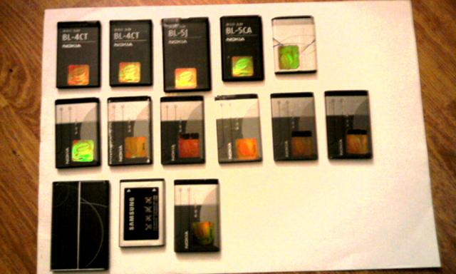 NOKIA - 4vnt BL-4C, 4vnt BL-5C, 2vnt BL-4CT, 1vnt BL-5CA, 1vnt BL-5J, 1vnt BL-5B... Samsung - AB463446BU.. HUAWEI - HB4F1. Visos baterijos veikia, kitos apynaujes, kiek laiko nezinau.