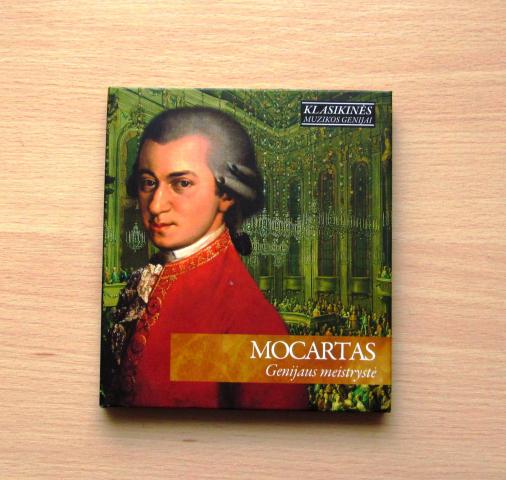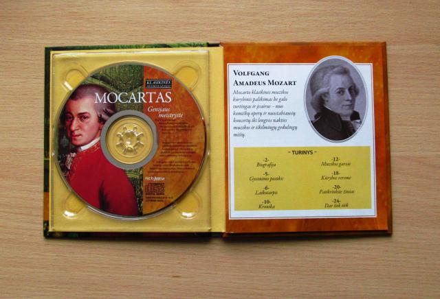 naujas kompaktas, klasikinė muzika, salia yra knygutė apie Mocarta