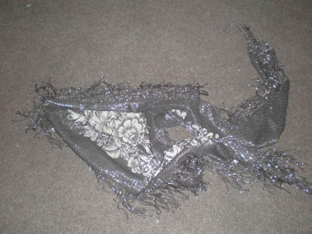 juoda su sidabriniu svytinciu siuleliu,puikiai atmusa is po juodo paltuko.graz:)