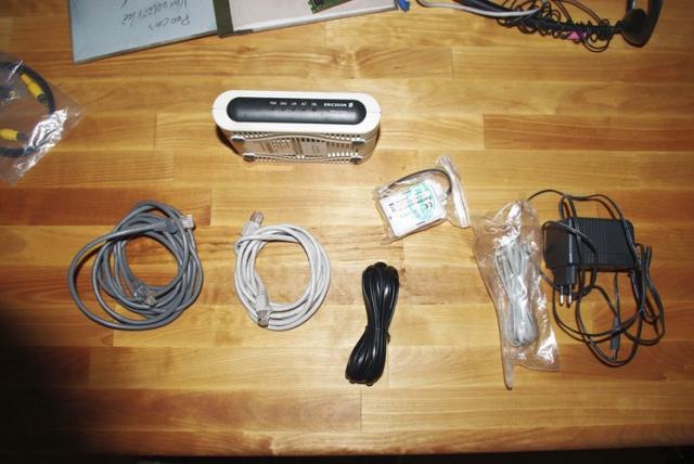 Modemas ericsson, LAN laidai, 1.5, 2 ir 5 metru, ir dar visokie daiktai prie traukosemodemo, viskas aiskiai matosi nuo