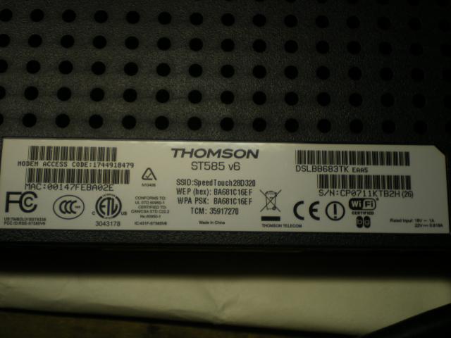 Modemas THOMSON ST 585 su maitinimo šaltiniu, prieš metus buvo pajungtas ir puikiai veikė