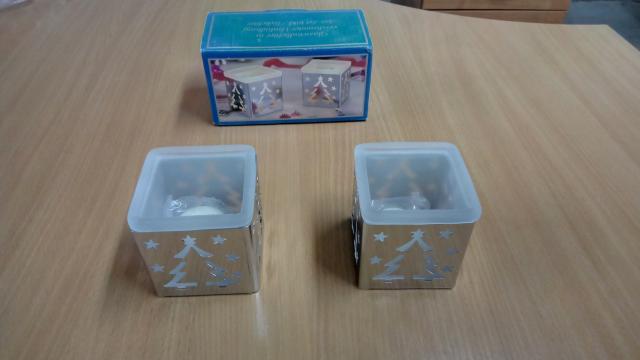 Naujų dviejų žvakidžių komplektas. Sunkios, iš metalo ir stiklo. Su žvakėmis.