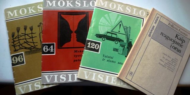 Knygelės"Mokslo naujienos visiems"-Vaistų poveikis eismo saugumui, 54 psl., 1979 m.///Mokslas tyrinėja pats save, 23 psl., 1970 m.///Pelėsiai - draugai ar priešai?, 48 psl., 1975 m.///Folkeris Faustas.Kaip reaguojame į orus 96 psl., 1990 m.