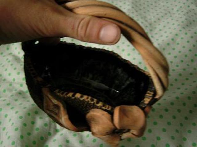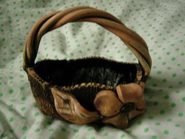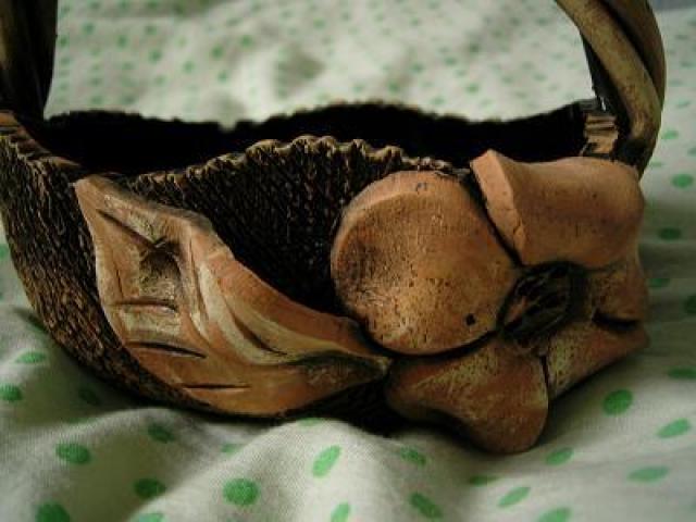 Nauja. Nulipdyta iš molio. Vidus glazūruotas tamsiai žalia spalva. ant šono su gėlyte.