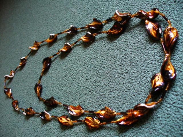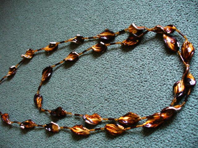 ilgi karoliai. stambesni karoliukai iš molio, jų tarpe - smulkučiai plastmasiniai. labai gražiai atrodo ant kaklo :)