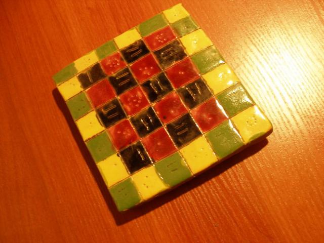 Rankų darbo molinis padėkliukas,maždaug 13x13; galima naudoti kaip padėkliuką puodams,puodeliams,vazonėliams