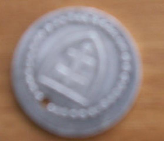 neįsivaizduoju iš kur gavau, bet įtariu, kad per kokią Jūros šventę 3(?) metai atgal. skylutė gamyklinė. moneta išlieta kreivai kažkaip. metalas lyg ir aliuminis..