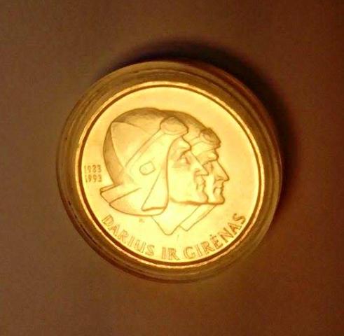 moneta skirta Dariaus ir Girėno skrydžio per Atlantą šešiasdešimtosioms metinėms