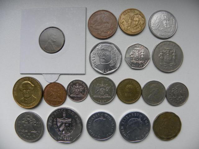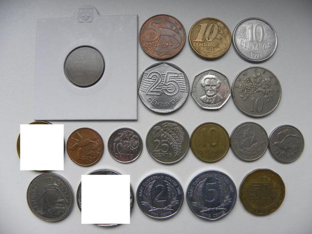 amerika, brazilija(25c ir 10c geltonos nebera), jamaika(kampuotos nera), trinidad and tobaco(nera), argentina, east caribean states, barbadosas, cuba, east caribean states(nebera), meksika