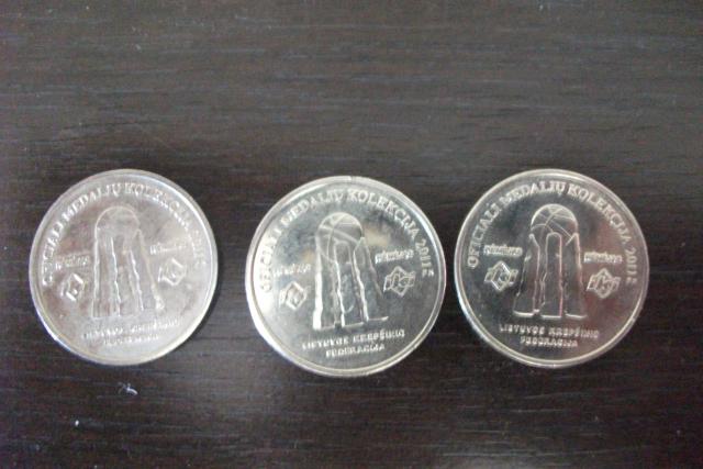 trys monetos is oficialios medaliu kolekcijos. su krepsininkais Modestas Paulauskas Stepas Butautas Simas Jasaitis