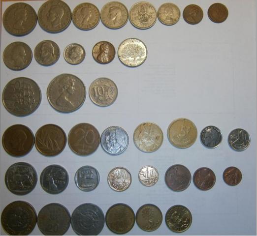 Daug monetu, yra daug vienetu tu paciu, nufotografuotos visos skirtigos