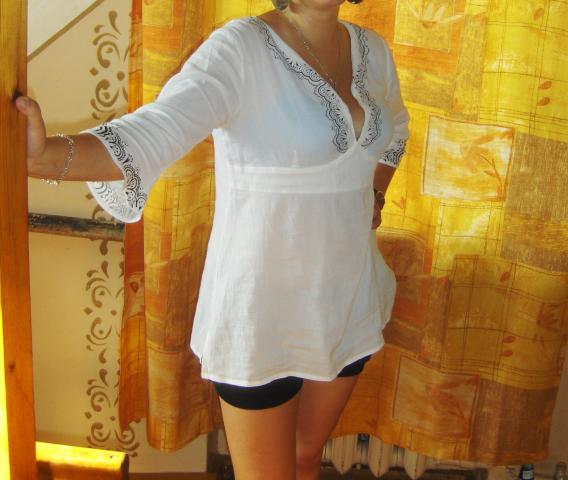 Balta, su raštais. S/M dydis,labiau gal į M.