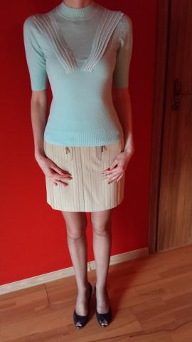 Žydra Monton palaidinė. Dėvėta kelis kartus. Dydis M. Elegantiška, nuostabiai tinka po švarkeliu, švelni medžiaga. Ilgis 53 cm.