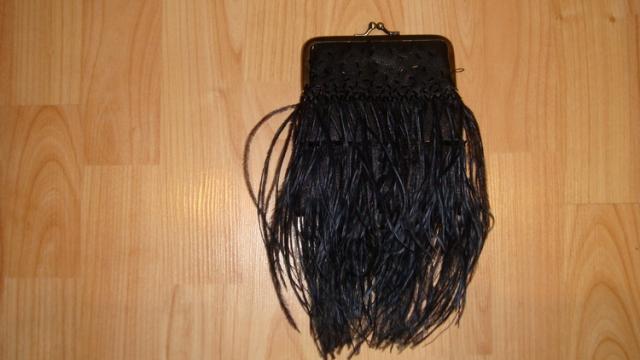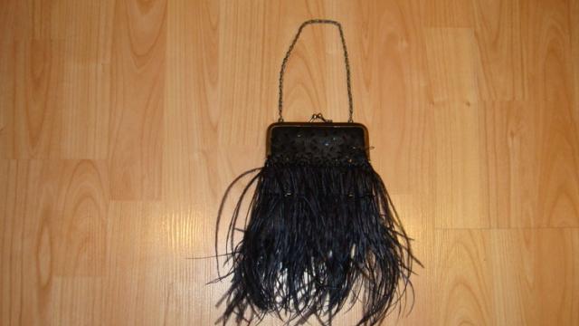 Su naturaliom strucio plunksnelem ir pasiuvineta karoliukais.