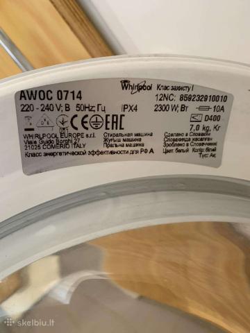 Parduodame mažai naudotą įmontuojamą skalbimo mašiną Whirlpool AWOC 0714. Naudota apie 2 m. laiko, veikia nepriekaištingai, skalbia puikiai. Komplekte įmontavimo vyriai ir durelių magnetai. Parduodame, nes perkame kita su dziovykle. tel 8657 89984