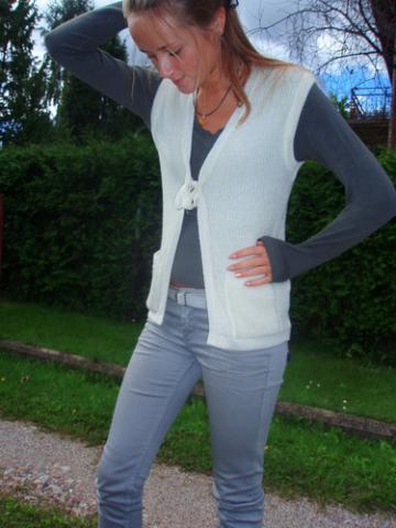 Moteriška, balta liemenė su kišenėlėm.
