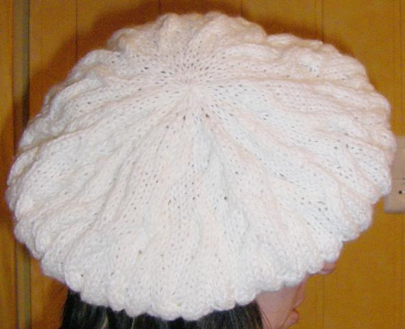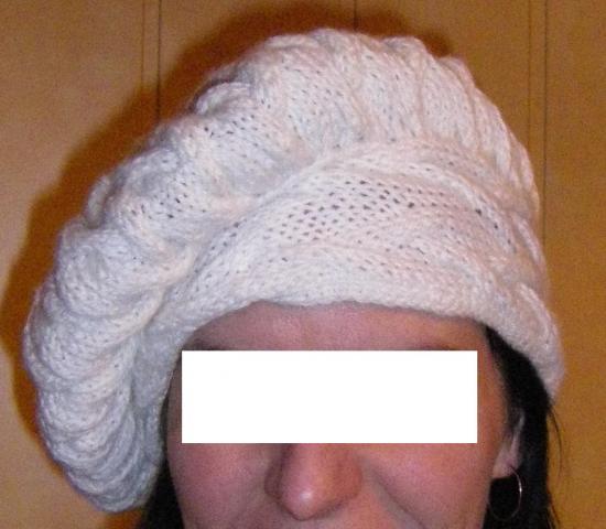 Rankų darbo megzta beretė. Visiškai nauja. Mezgiau sau, bet išėjo didoka (mano galvos apimtis 57 cm.). Siūlai 50 proc akrilano, 50 proc. merino vilnos. Kraštas baltas. o pati kepurė šiek tiek tamsesnio atspalvio (berods pieno spalva vadinasi)