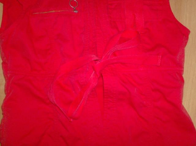 Raudonos spalvos Effigy liemenė.Rašo M dydį, tačiau puikiai tinka ir S dydį nešiojančioms merginoms.Liemenė devėta 1-2 kartus.Priekyje 2 kišenės ( viena užsegama užtrauktuku, kita užsegama saga ).100% - medvilnė.