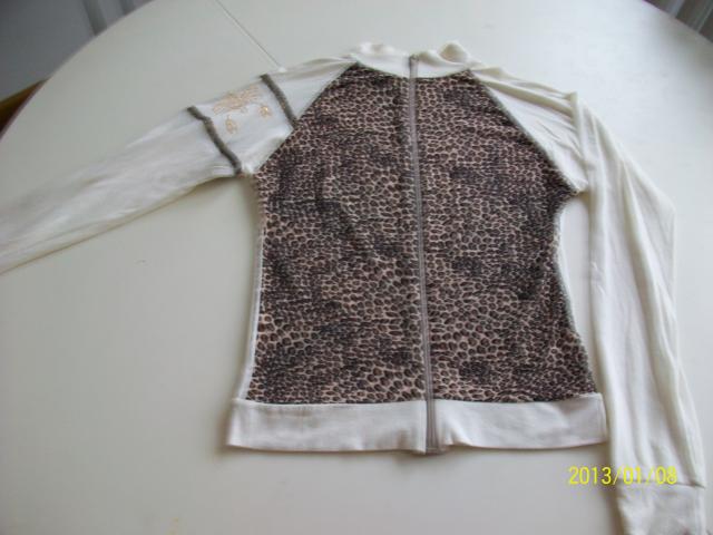 Moteriška palaidinė- bliuzoniukas, šviesus, su papuošimais, užsegamas užtrauktuku, nugara balta :)