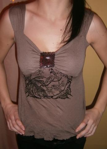 graži palaidinė, rudos spalvos, viduryje yra blizgutis