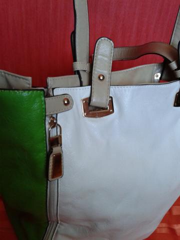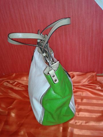 Savaitę nešiota rankinė. Nepatinka. Vienas defektas matosi paskutinėje nuotraukoje - išsipaišiusi kišenėlė nuo tušinuko. Yra ilga rankena. Išmatavimai: Ilgis 44 cm Plotis 18 cm Aukštis 35 cm Rankenų ilgis 50 cm