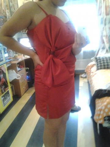 Uzsideta tik 1 karta per svente suknele. sone labai grazus kaspinas,jo vidurys papuostas raudonais karoliais.