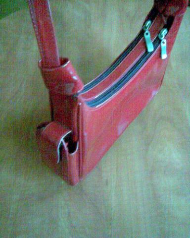 Vyšninės spalvos rankinė, yra 2 skyriai, reguliuojamas dirželio ilgis, yra speciali kišenė telefonui.
