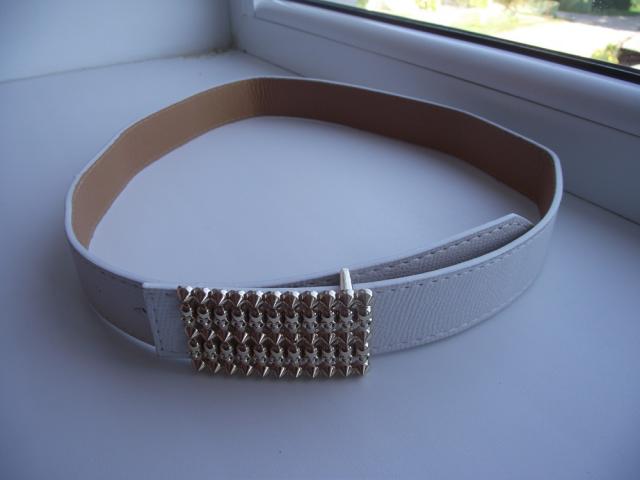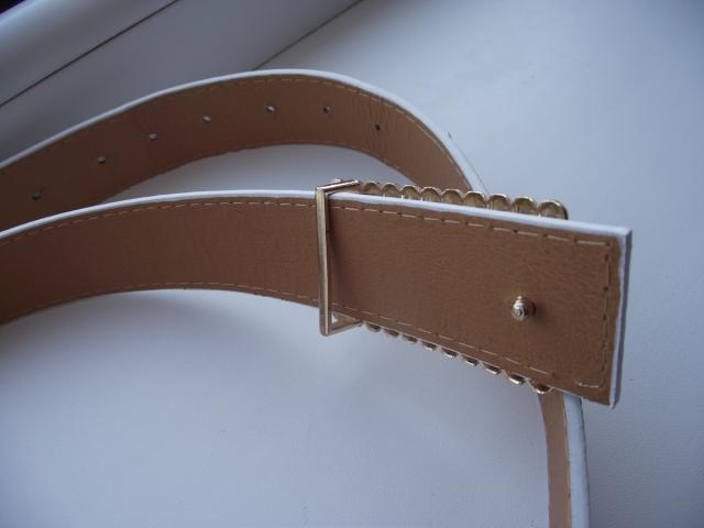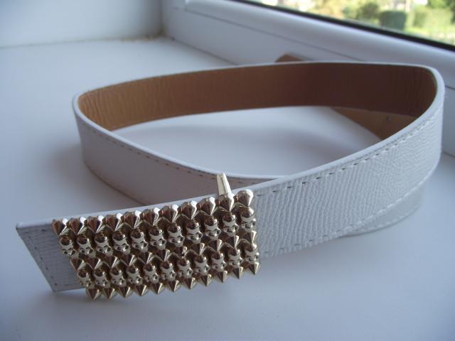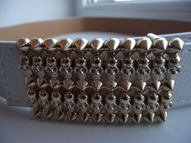 Naujas, baltas diržas su kaukolyčių sagtimi.