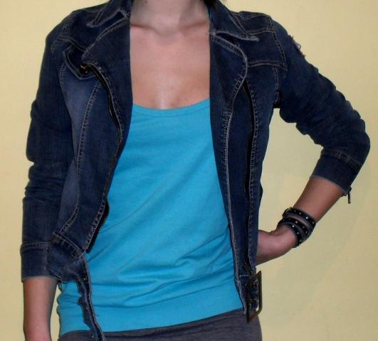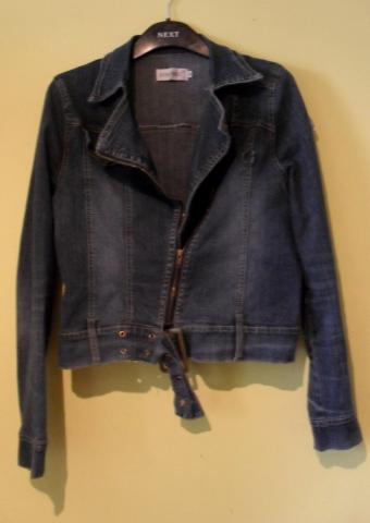 Trumpas džinsinis švarkelis, tamsiai mėlyno džinso, užsegamas. Parduodu, nes man kiek didokas