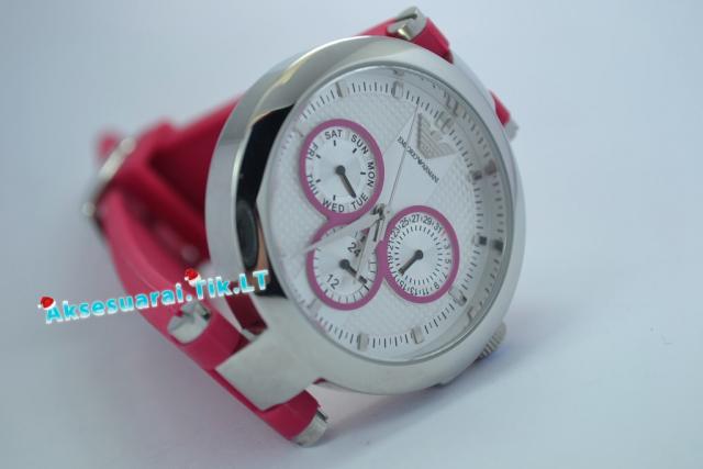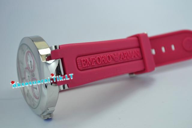 Moteriškas Emporio armani Laikrodis AR0737 naujas be defektu. Modelis: AR0737 Skersmuo (mm): 38 Storis (mm): 9 Stiklas: safyro kristalų Judėjimas: Kvarcas Dirželis: rausvos spalvos sintetinio kaučiuko dirželis Atsparumas vandeniui: 50m / 5 ATM