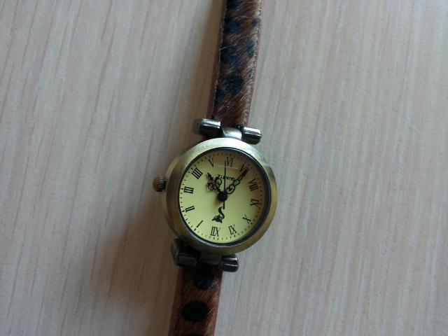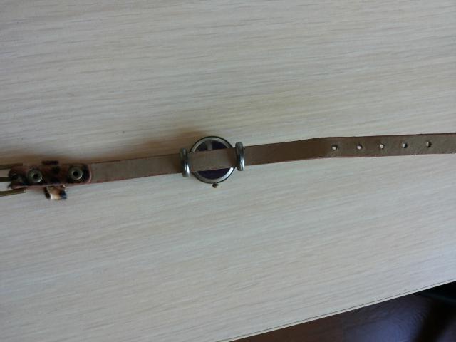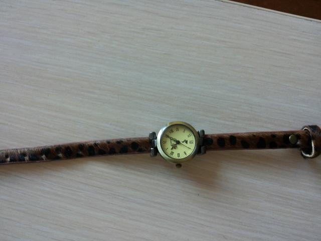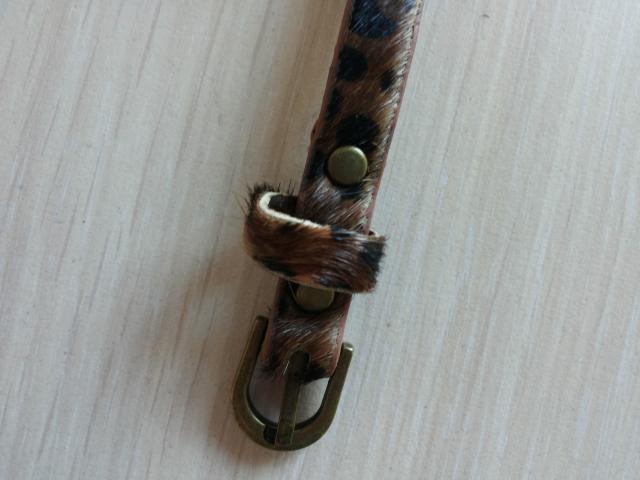 Odinė (su šereliu) tamsiai rudos spalvos juodomis dėmelėmis apyrankė, kospuso skersmuo 2,5cm, apyrankės plotis 1cm.
