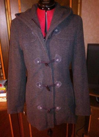 Pilkas rudeninis (o jei žiema nešalta, tai ir žieminis) paltukas su užtrauktuku ir dekoratyvinėm sagom, su gobtuvu. Dydis - M (36-38)