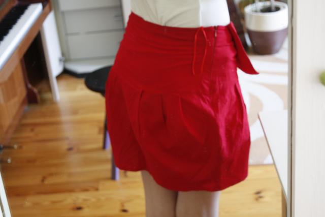 visiškai naujas raudonas sijonas su kaspinu puikiai derės prie visko!:)