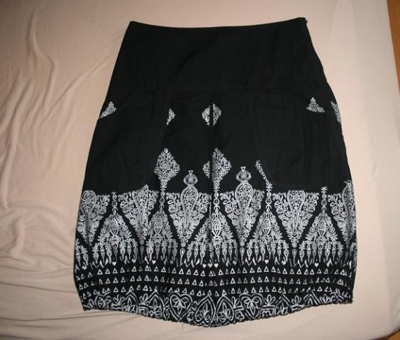 100% medvilnė Sijonas mažai dėvėtas. Ilgis 58 cm; apimtis per liemenį (siauriausia vieta) 74 cm, per klubus (plačiausia vieta) ~108 cm (yra klostė, todėl sijonas gali „platėti“). Dydis - tarp S ir M.