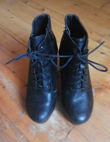 Vos keletą kartų avėti patogūs aukštakulniai, pirkti Osle. Neodiniai, tačiau kokybiška ir patvari odos imitacija. Mano dydis 38-39 (priklausomai nuo firmos ir modelio), tai man jie tiko. Atiduodu, nes labai retai turiu progą apsiauti aukštakulnius, o išmesti beveik naujus gaila. Jokių defektų nėra. Apgailestauju, bet mainai nedomina, nes labai reikia pinigų. Dėl kainos galima derėtis.