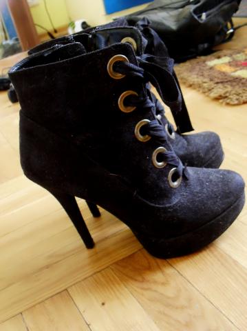 Visiškai nauji moteriški aukštakulniai, buvau užsidėjusi gal kartą, ir tai net ne lauke. Kablo aukštis 12,5cm, platformėlės priekyje - 3cm. NEMAINAU. (nuotraukose kai kur matosi apsivėlę pūkeliais ir plaukeliais tai dėl to kad buvo nenešiojami pusę metų ir dulkėjo spintoje, perkant viskas būtų nuvalyta ir sutvarkyta : ) )