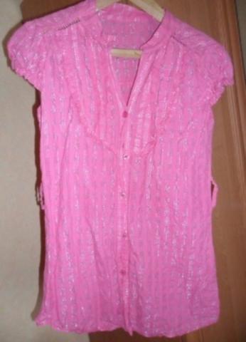 Rožiniai su pilkais dryželiais, kurie blizga. Susagstomi, tikrai dailučiai. Be defektų.