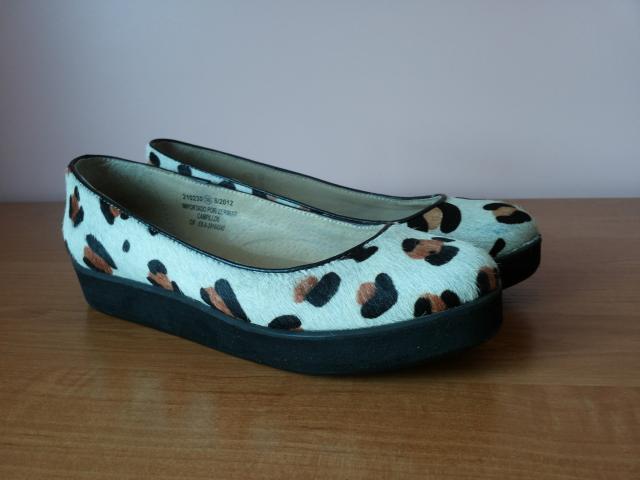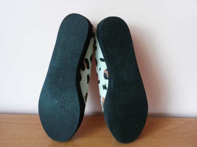 Išorė - natūrali oda (natūralus skustas kailiukas su šereliu), batelio vidus - natūrali oda. Pado aukštis - 3cm. dailūs ir stilingi bateliai, porąkart užsidėti