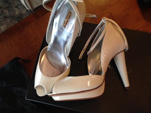 Nauji, natūralios odos (balta, lakuota, gyvatės raštas) bateliai. Dydis 39 (EU)/ 8,5(USA)