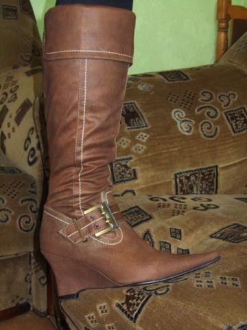 Moteriški ilgaauliai, verstos odos, rudos spalvos, batų padai kaip nauji, nenešioti batai. Būklė labai gera. Labai gražiai atrodo ant kojų. Kaina 30lt. + siuntimo išlaidos, dar galima derėtis.