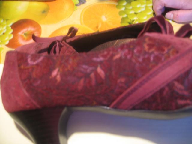 Labai gražūs, originalus bateliai. Viršus- gobelenas su versta oda. Kulnas nedidelis. Reali spalva,tokia kaip nuotraukoje. Jei pėda platenė- dydis ~39 gal 39,5.