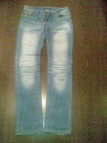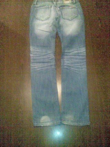 Šviesiai žydros spalvos, vietomis nubalinti. Tiesaus kirpimo. Žemesnio liemens. DYDIS 38 - 40 ;)